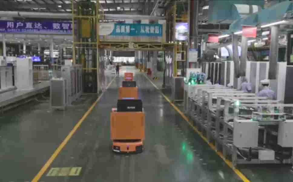 为车载冰箱物流配送打造的智能解决方案,,,,包含产中物流通过潜伏举升AMR搬运至线边,,,,产后成品物流智能仓储,,,流程包含产中物流智能齐套入库,,线边安灯叫料AMR智能配送至线边,,成品入库、、、、出库,,,,通过无人堆高车机器人,,智能仓储管理替代人工作业管理,,实现更高存储、、更高效率、、更具柔性化的解决方案。。。。